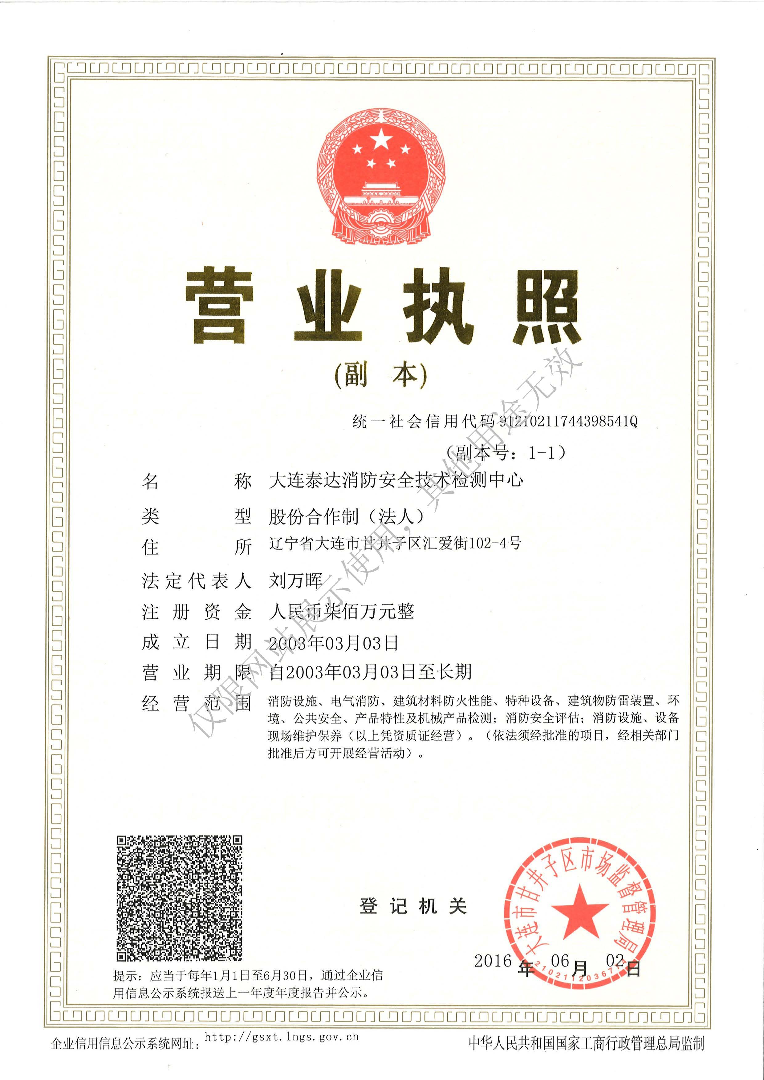 · 是經(jīng)“社會消防技術(shù)服務(wù)信息系統(tǒng)”備案并公示的消防技術(shù)服務(wù)機構(gòu),已取得中國氣象局頒發(fā)的雷電防護裝置檢測資質(zhì)證書、遼寧省質(zhì)量技術(shù)監(jiān)督局審核批準的檢驗檢測機構(gòu)資質(zhì)認定證書(CMA)及包括消防檢測、電氣檢測、雷電防護裝置檢測、防火涂層厚度檢測等在內(nèi)的200余項檢驗檢測能力,取得大連市應(yīng)急管理局頒發(fā)的安全生產(chǎn)標準化證書,獲得質(zhì)量管理體系、環(huán)境管理體系、職業(yè)健康安全管理體系認證證書,是經(jīng)備案的高新技術(shù)企業(yè),可獨立出具具有證明作用的檢測報告。